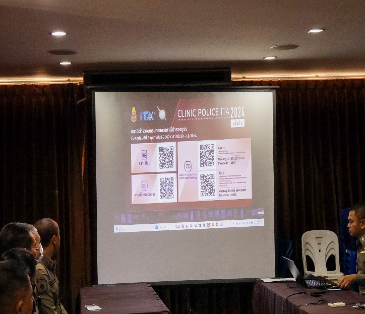 วันที่ 16 มกราคม 2567  พ.ต.อ.ปริญญา  ทองมา  ผกก.สภ.ประตูน้ำจุฬาลงกรณ์ มีการจัดประชุม เจ้าหน้าที่ทุกสายงาน เพื่อแนะนำการขอความร่วมมือจากประชาชนบุคคลภายนอกเพื่อทำแบบประเมินแบบวัดการรับรู้ของผู้มีส่วนได้เสียภายนอก EIT และ มอบหมายหัวหน้างานทุกสายงานดำเนินการ ติดตามผลการดำเนินการในกิจกรรม การประเมิน ITA ประจำปีงบประมาณ 2567