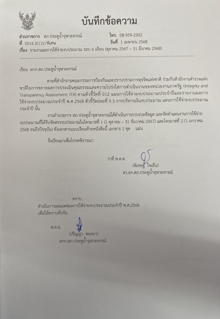 รายงานผลการใช้จ่ายงบประมาณ รอบ 6 เดือน